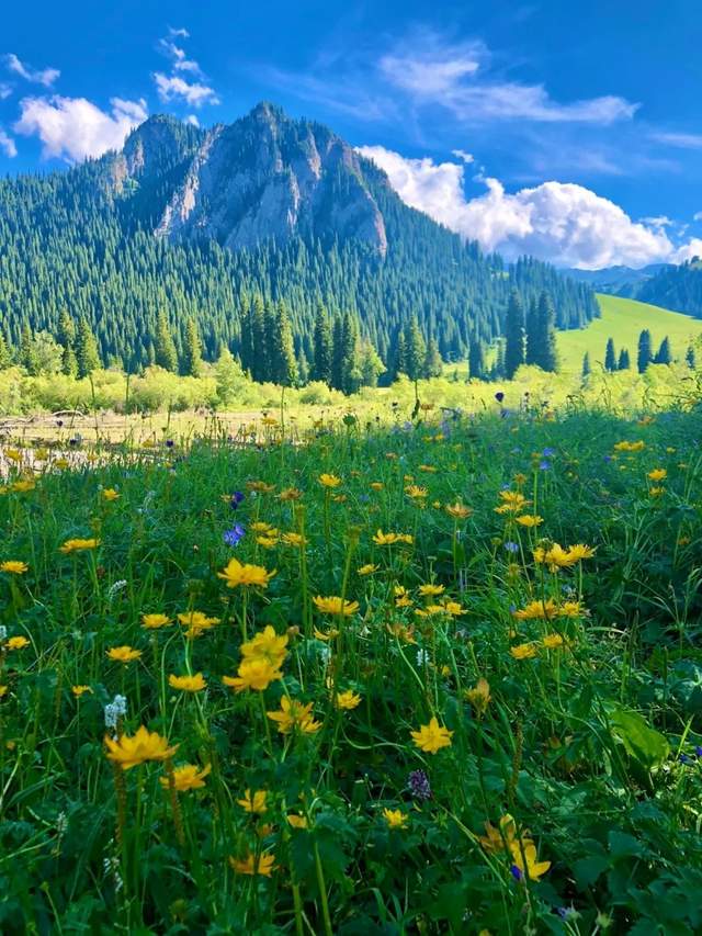 滔滔的喀什河水奔騰不息,喀什河南岸芳草茵茵,如果運氣好,你可以看見百花盛開的美景。每年夏季,這里百花齊放,奇花異草,數(shù)不勝數(shù)!仿佛仙女在這里編織了一個又一個花海毯子!