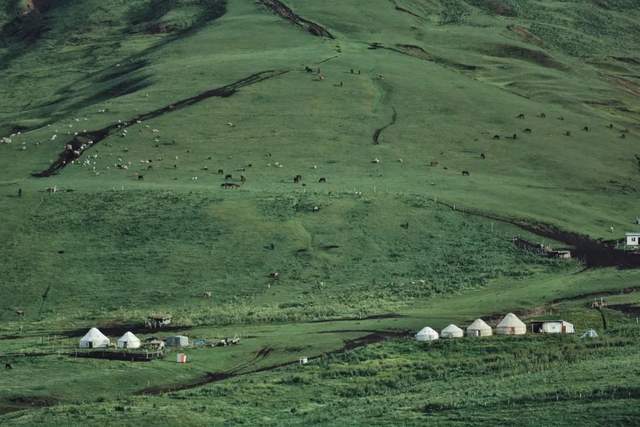 這里是哈薩克牧民的夏牧場,草原上牧民的帳篷和羊群馬群很多。這里的牧民淳樸勤勞,帳篷內(nèi)外收拾得干干凈凈,帳篷內(nèi)鋪著地毯,墻上圍著掛毯,孩子的衣服,手臉也都干干凈凈的。