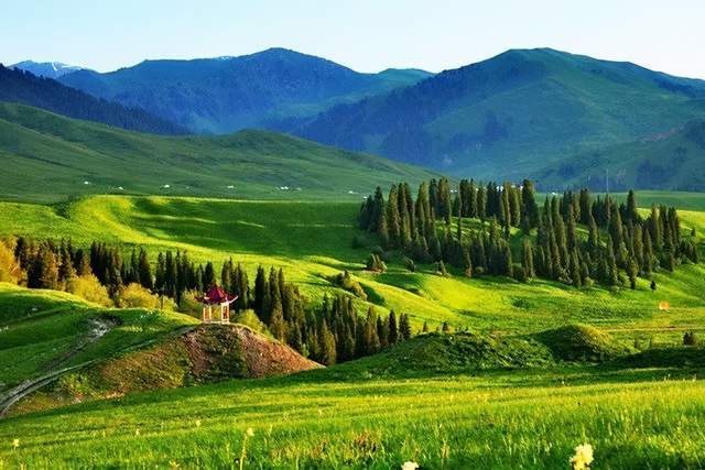 唐布拉大草原是亞洲四大最美草原之一,素有“百里畫卷,天然畫廊”之美譽,被譽為人間天堂。有詩人形容唐布拉是“天神戀愛的地方”,每至初夏,有無數(shù)畫家、攝影家來此寫生和采風(fēng)。地處新疆天山北部尼勒克縣境內(nèi)的唐布拉大草原進入初夏,嫩綠的草原猶如一幅巨大的綠色地毯從天際鋪展開來!